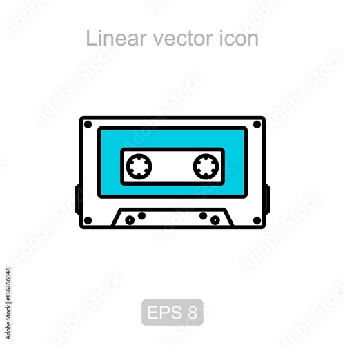 © dmitrey, Obraz premium Audio cassette. Linear vector icon.