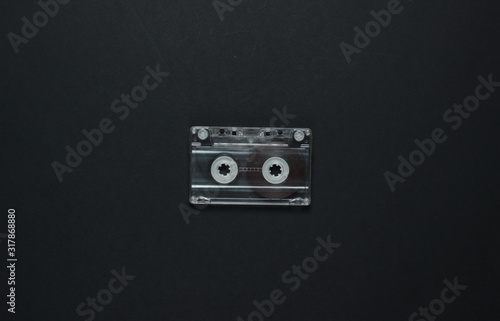Fototapeta premium Audio cassette on a black background. Top view