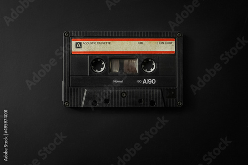 Fototapeta premium Audio cassette on black background, Vintage poster