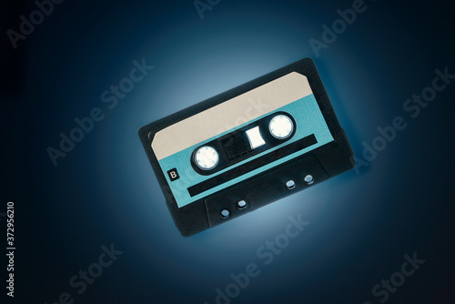 © olegkruglyak3, Fototapeta premium Audio cassette on blue background