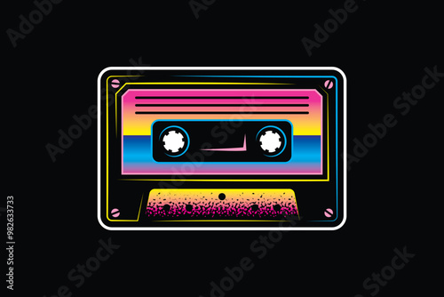 Obraz premium Audio cassette. Original vector illustration in vintage style. T-shirt design.