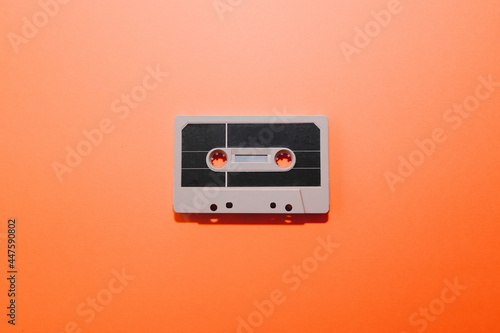 © padnob, Fototapeta premium Audio cassette tape isolated on orange background. Copy space