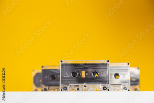 © stasknop, Obraz premium audio cassettes on a yellow background