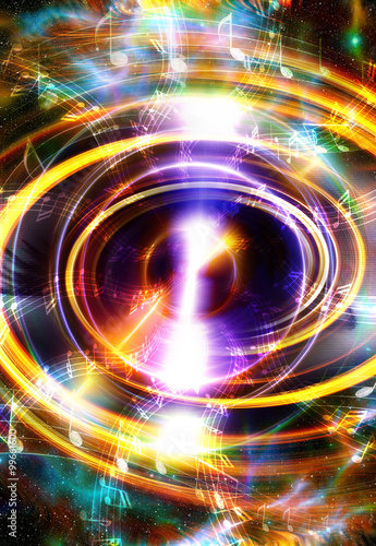 © jozefklopacka, Obraz premium Audio music Speaker and note. Cosmic space and stars, abstract cosmic background.