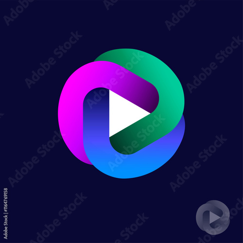 © Nataly, Obraz premium Audio or video player icon. The audio and video emblem consists of three colored stripes and a play symbol inside.