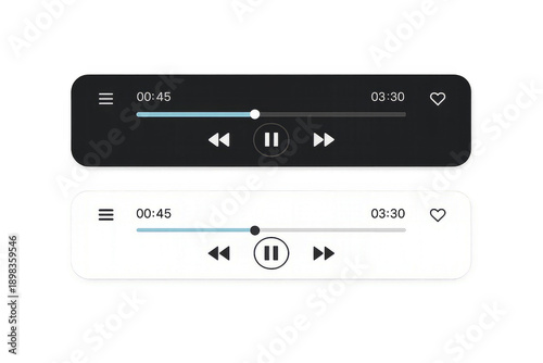 Obraz premium Audio player interface with black and white playback controls on transparent...