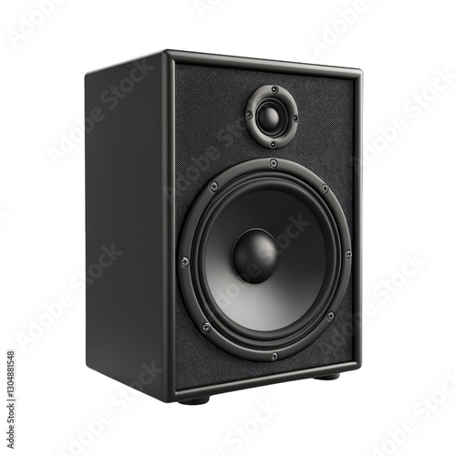 © wiwat, Fototapeta premium Audio Powerhouse: A sleek, modern black loudspeaker stands ready to deliver immersive audio experiences.
