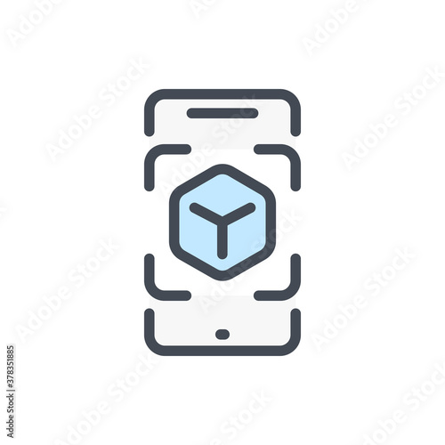 © NikWB, Fototapeta premium Augmented reality color line icon. Mobile phone with Cube scanning vector outline colorful sign.