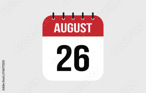 Fototapeta premium 26 August Calendar. August Calendar Vector Illustration.