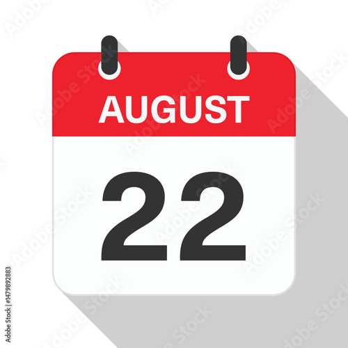 Fototapeta premium August 22 Daily Calendar. Red Theme on White Background