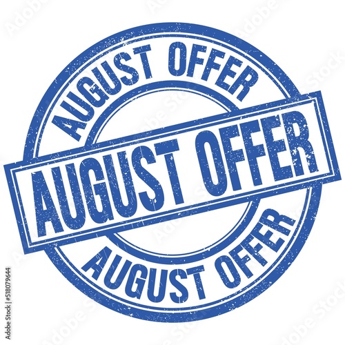 Fototapeta premium AUGUST OFFER written word on blue stamp sign