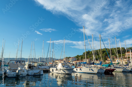 © barmalini, Naklejka premium August 13, 2018, small fishermans and yacht haven, marina in Saint-Mandrier-sur-Mer, Provence, France