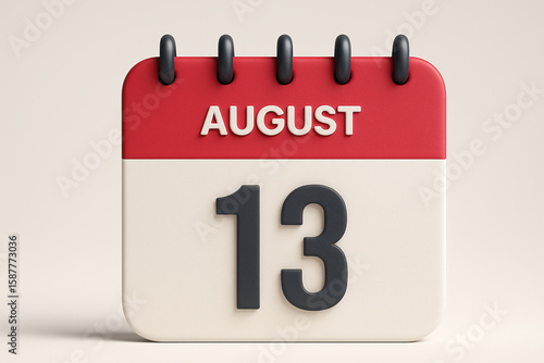 Fototapeta premium August 13th Calendar Page Reminder for Schedule Planning and Important Event Notification in Red and White