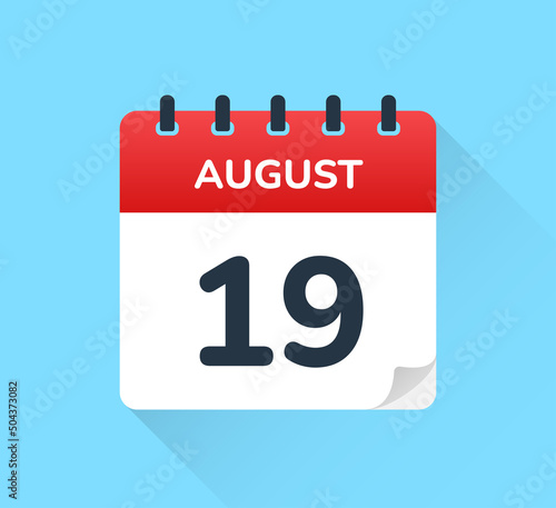 © Icons-Studio, Fototapeta premium August 19. Vector flat daily calendar icon. Date and time, day, month.