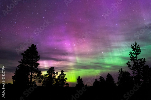 Naklejka premium Aurora Borealis, Northern Lights, above boreal forest.
