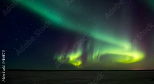 Fototapeta premium aurora borealis, northern lights, aurora, Aurora Borealis over Frozen Lake