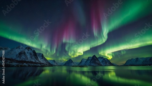 Naklejka premium Aurora Borealis: Northern Lights Over Snowy Landscape