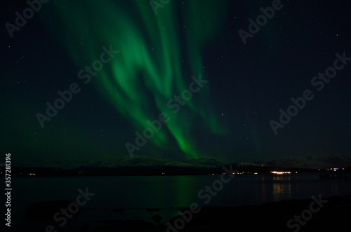 © Arcticphotoworks, Naklejka premium aurora borealis over cold arctic sea