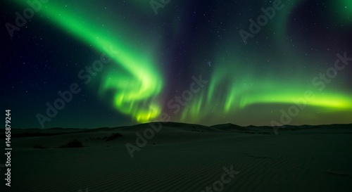 © Adobe, Naklejka premium Aurora borealis over dunes
