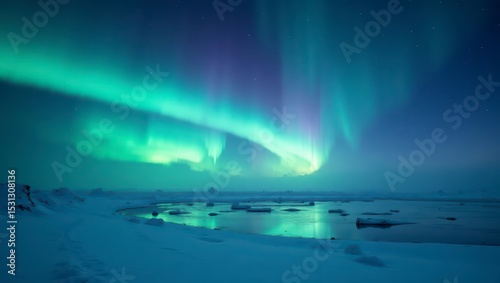 Naklejka premium Aurora Borealis Over Frozen Landscape