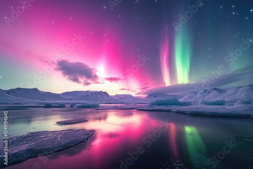 Naklejka premium Aurora borealis over frozen landscape (1)