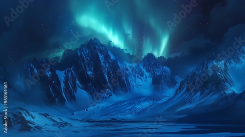 Naklejka premium Aurora Borealis over Snowy Mountains