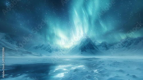 Fototapeta premium Aurora Borealis Over Snowy Mountains - Illustration