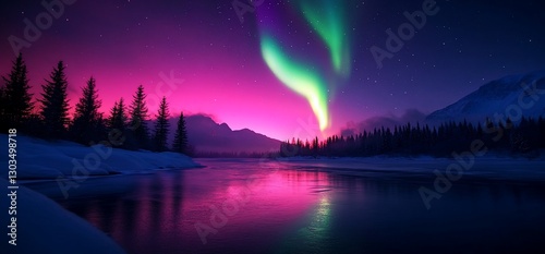 © Bayu, Fototapeta premium Aurora Borealis over Winter River