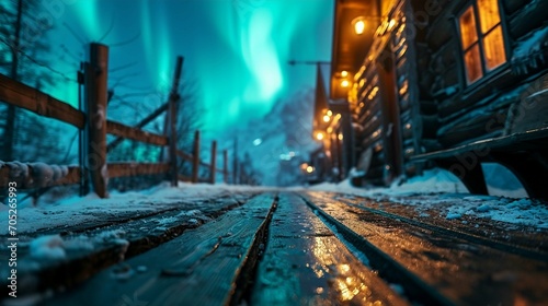 Naklejka premium Aurora borealis wooden surface.