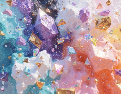 © Wuttichai, Fototapeta premium Aurora of crystal shapes amidst vibrant pastels