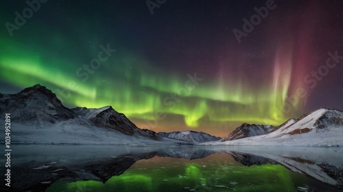 Naklejka premium Aurora on Mars in the Snowy Mountains
