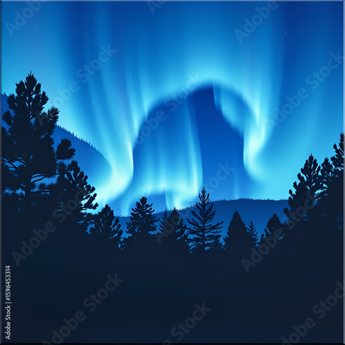Naklejka premium Aurora Over Pine Forest with Canvas Artwork, Shadow Play and Navy Blue (Valentine'S Cozy)