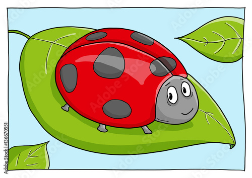 Naklejka premium Ausmalbild Marienkäfer koloriert