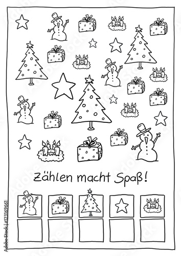 © singmuang, Obraz premium Ausmalbild Zählen Weihnachten