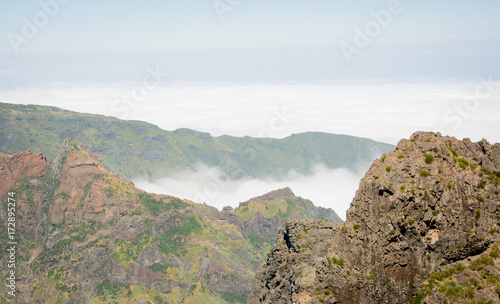 © Remo, Naklejka premium Aussicht auf berge in dichtem Nebel