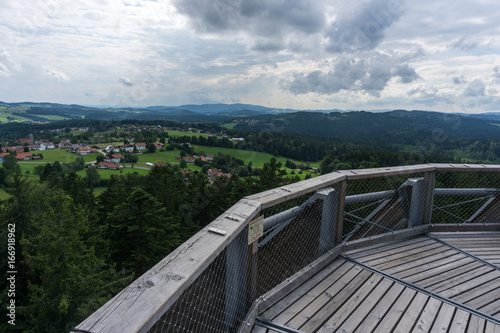 © Markus, Obraz premium Aussicht auf den Bayrischen Wald vom Aussichtspunkt Waldgipfelpfad