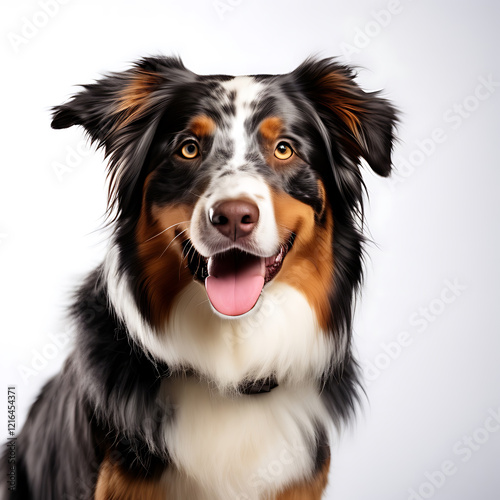 © Maciej, Fototapeta premium Aussiedor: A Playful Blend of Australian Shepherd and Labrador Retriever, Showcasing a Sleek Coat, Expressive Eyes, and Energetic Stance Against a Crisp, Seamless White Background.
