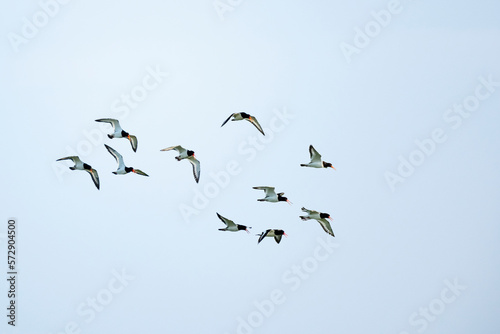 Fototapeta premium Austernfischer, Gruppe im Flug
