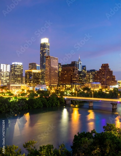 © Hilya, Obraz premium Austin Skyline Night View (1)