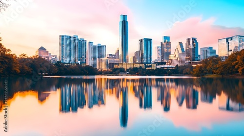 © terat, Fototapeta premium Austin Skyline Reflection at Dawn - Cityscapes