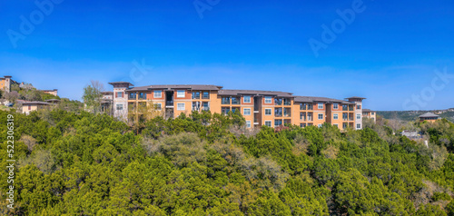 Obraz premium Austin, Texas- Apartment buildings near the cliff of a mountain with trees on...