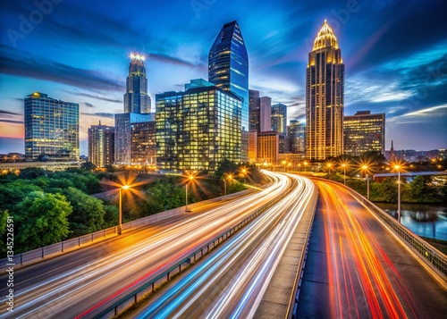 © Adisorn, Obraz premium Austin Texas Cityscape Long Exposure Light Trails Night Photography
