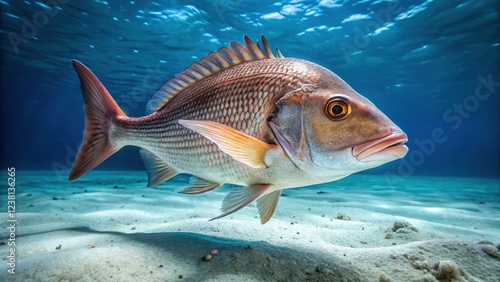 Naklejka premium Australasian Snapper, Erect Fins, Leigh NZ - Underwater Night Photography