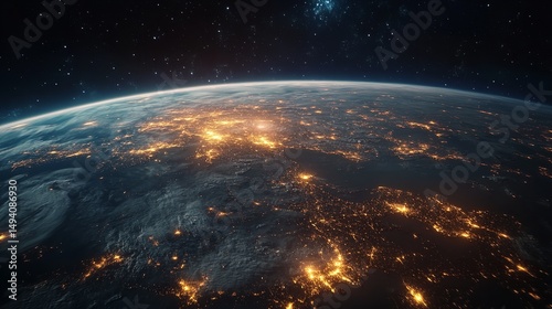 © Abdul, Obraz premium Australia from Space at Night with City Lights of Sydney and Melbourne