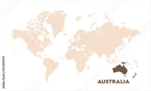 Naklejka premium Australia highlighted on world map-01, Map of Australia, highlighted on the...
