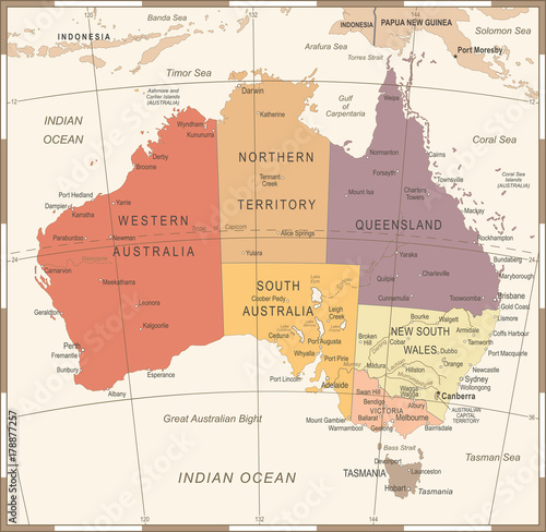 © Porcupen, Obraz premium Australia Map - Vintage Vector Illustration