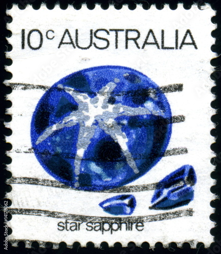 © Blue Moon, Naklejka premium Australia. Star Sapphire. Timbre postal oblitéré.