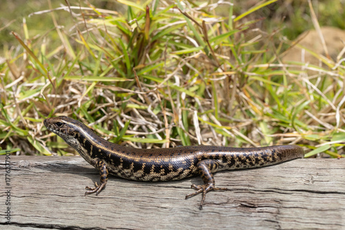 © Ken Griffiths, Naklejka premium Australian Eastern Water Skink basking on log