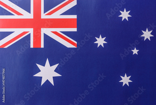 Fototapeta premium Australian flag as a backdrop. Travelling and learning in Austarlia
