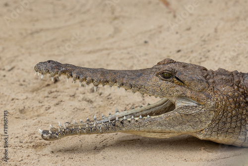 Obraz premium Australian Freshwater or Johnstone's River Crocodile with mouth agape